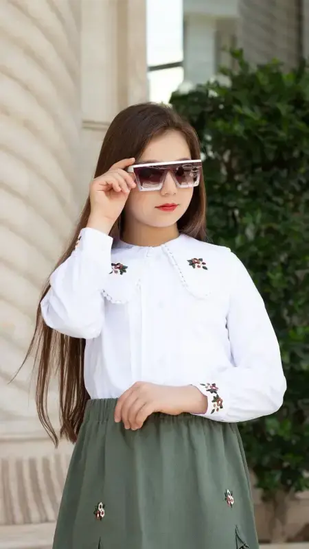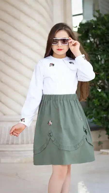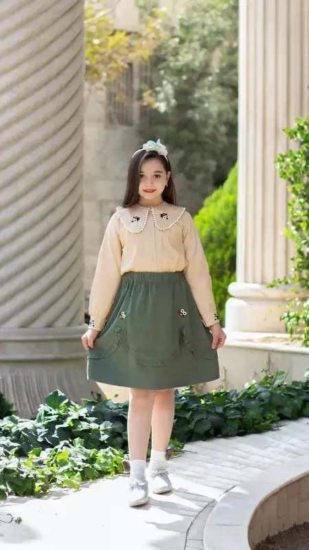 ست شومیز و دامن دخترانه کتان گلدوزی شده