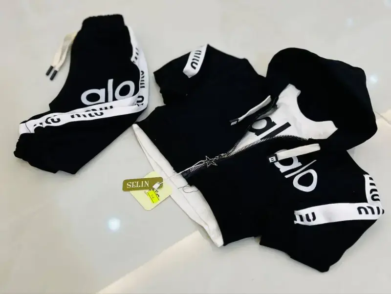 خرید عمده ست ۳ تکه بچگانه طرح Alo (بلوز، سویشرت، شلوار) - مشکی
