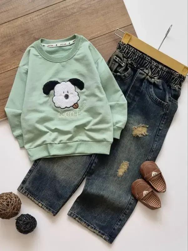 خرید عمده بلوز و شلوار پاییزه پسرانه طرح سگ