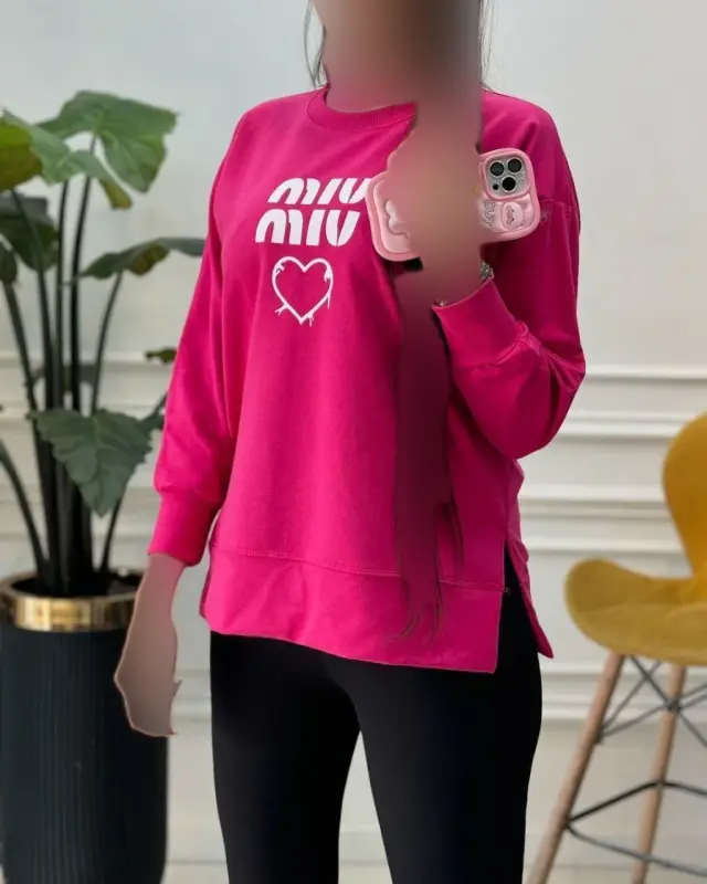 خرید عمده بلوز زنانه آستین بلند طرح Miu Miu با قلب