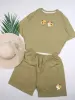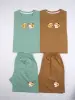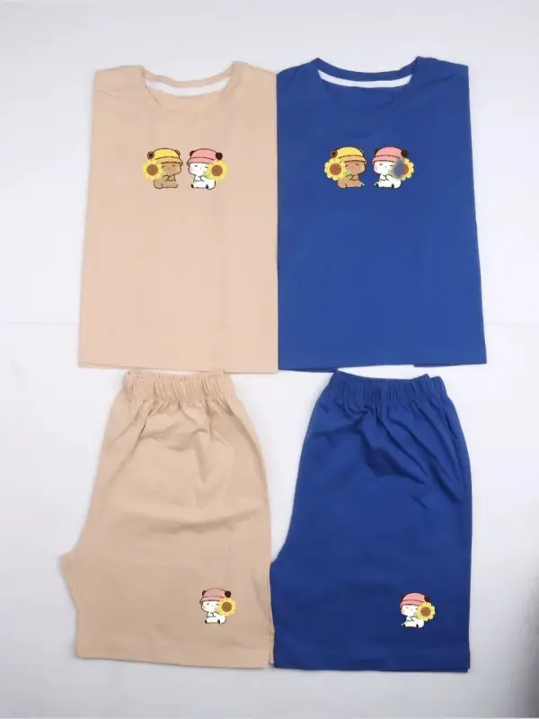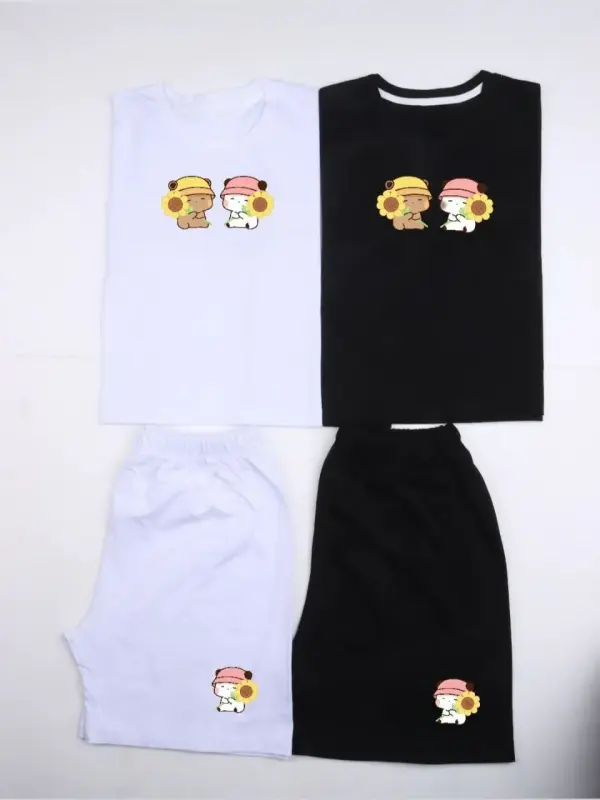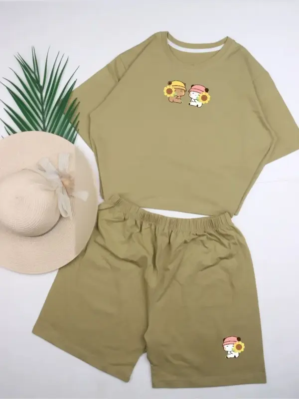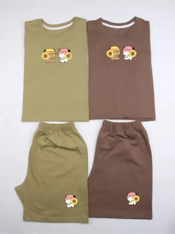 خرید عمده ست کراپ و شورتک نخی زنانه طرح پاندا و گل آفتابگردان