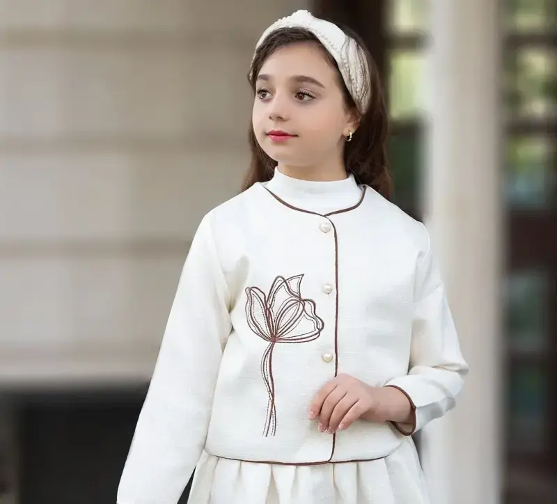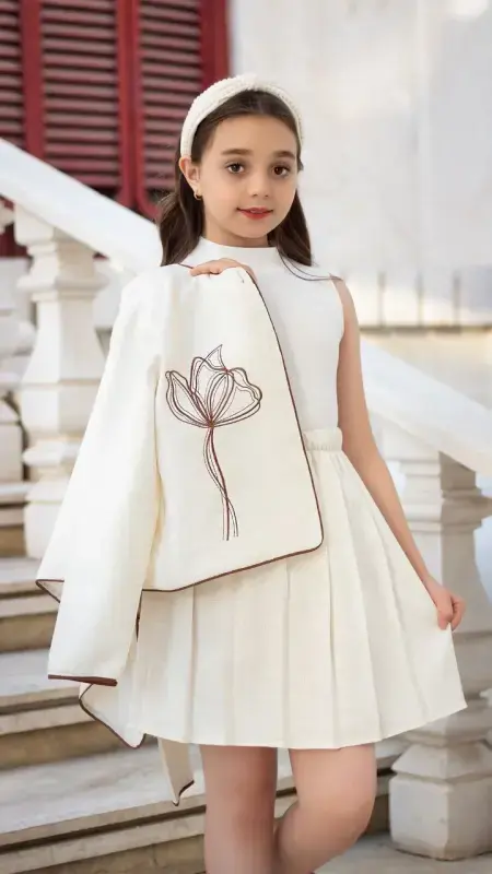 این ست سه تکه شامل کت، دامن و تاپ، انتخابی شیک و کاربردی برای دختران نوجوان است. طراحی منحصر به فرد و کیفیت بالای این محصول، آن را به گزینهای ایدهآل برای خرید عمده پوشاک دخترانه تبدیل کرده است.