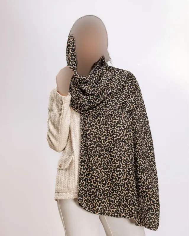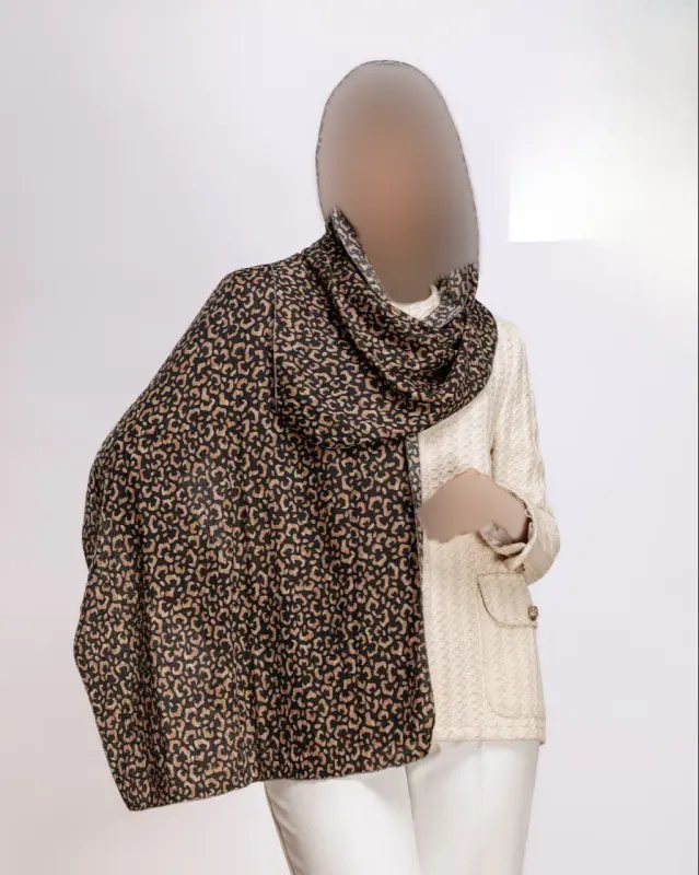 شال نخی زنانه برشکا طرح پلنگی با حاشیه لمه - مناسب پاییز