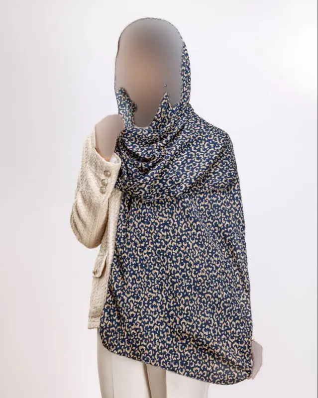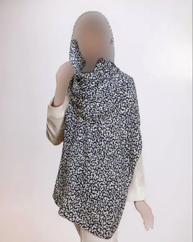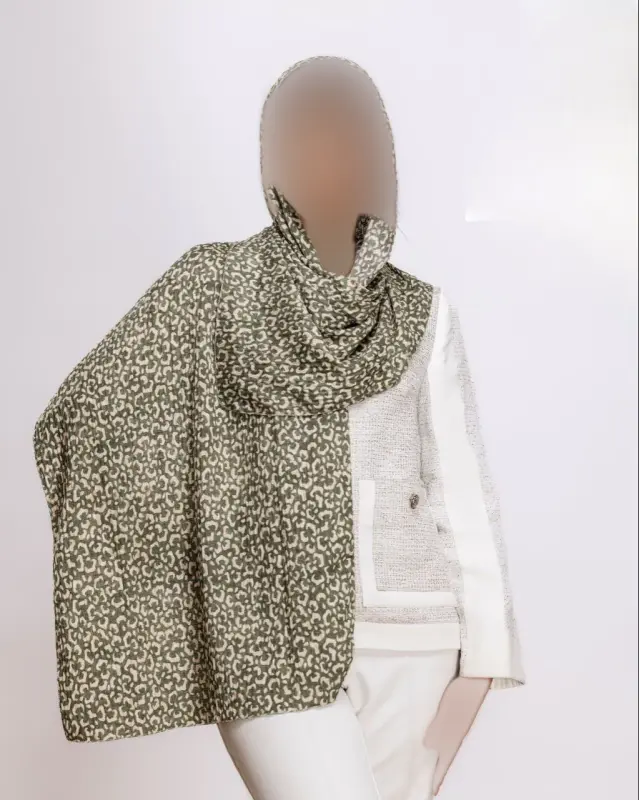 خرید عمده شال نخی زنانه برشکا طرح پلنگی حاشیه لمه پاییزه