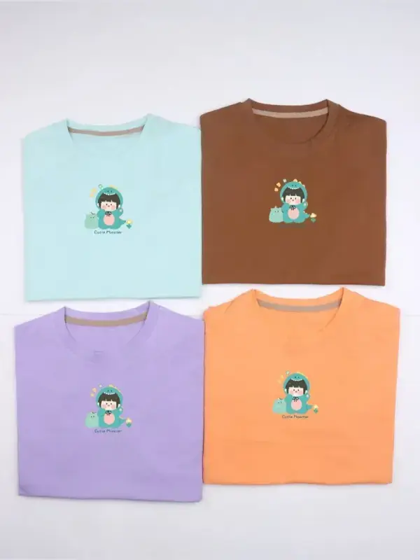 خرید عمده تیشرت باکسی دخترانه طرح دایناسور 8 رنگ سایز 36 تا 48