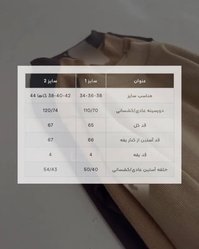 - سایزبندی: مناسب برای سایزهای 34 تا 44، پوششدهی طیف وسیعی از مشتریان.
