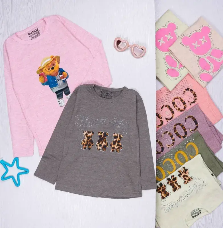 خرید عمده بلوز دخترانه جودون طرح خرس و پلنگ | پخش عمده پوشاک بچه گانه