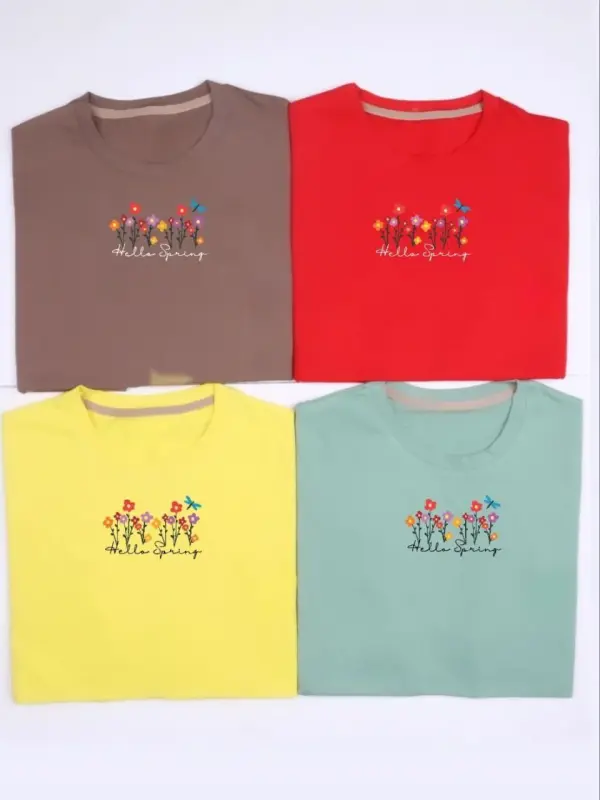 تیشرت زنانه طرح گل بهاری مدل باکسی