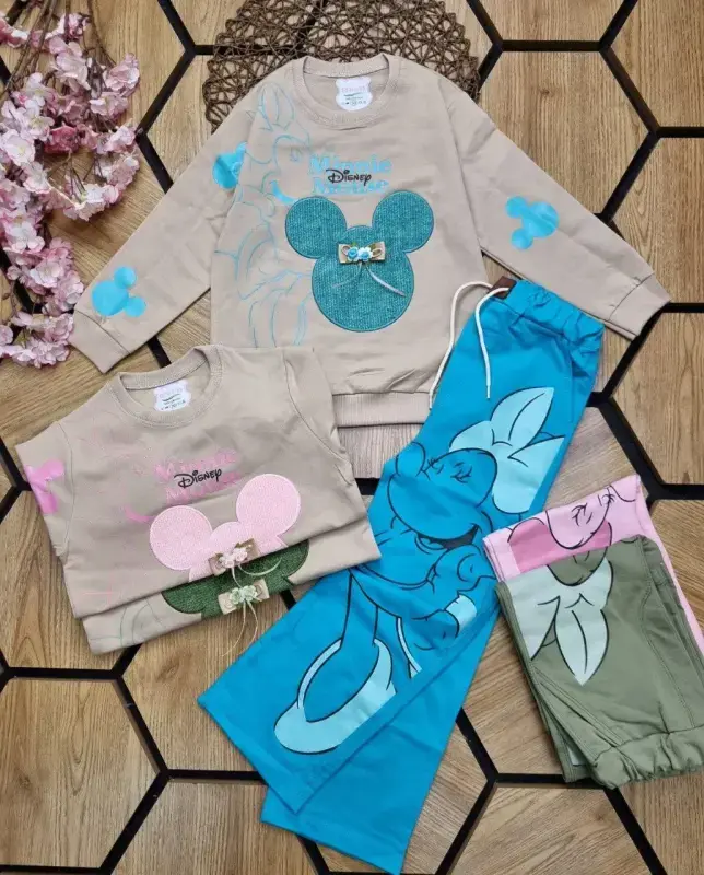 خرید عمده بلوز شلوار دخترانه طرح مینی موس دیزنی | پخش عمده پوشاک بچه گانه