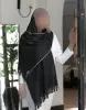 شال بافت آکریل ضخیم ریشهدار مشکی قواره بزرگ زنانه