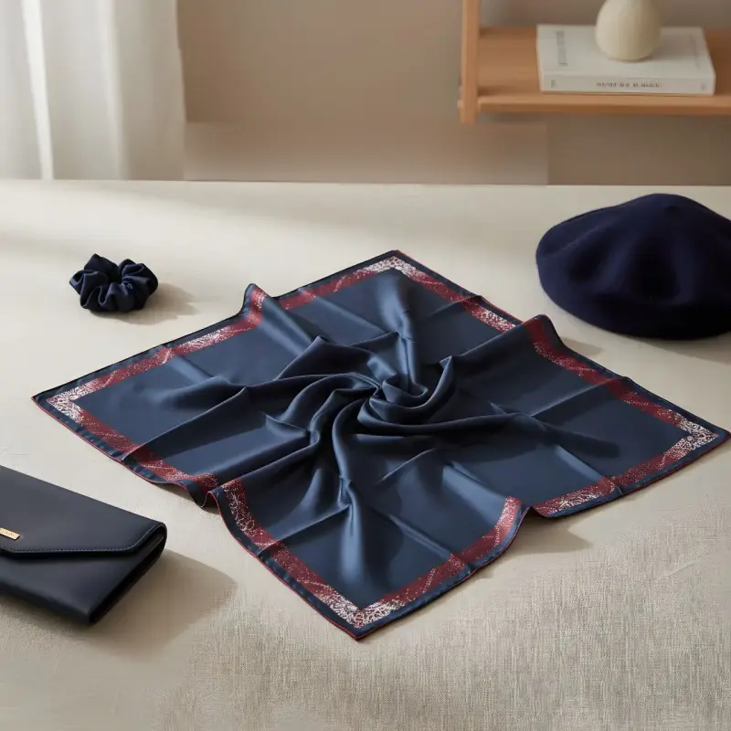 روسری ساتن ابریشم دور دست دوز طرح پاییزه زنانه