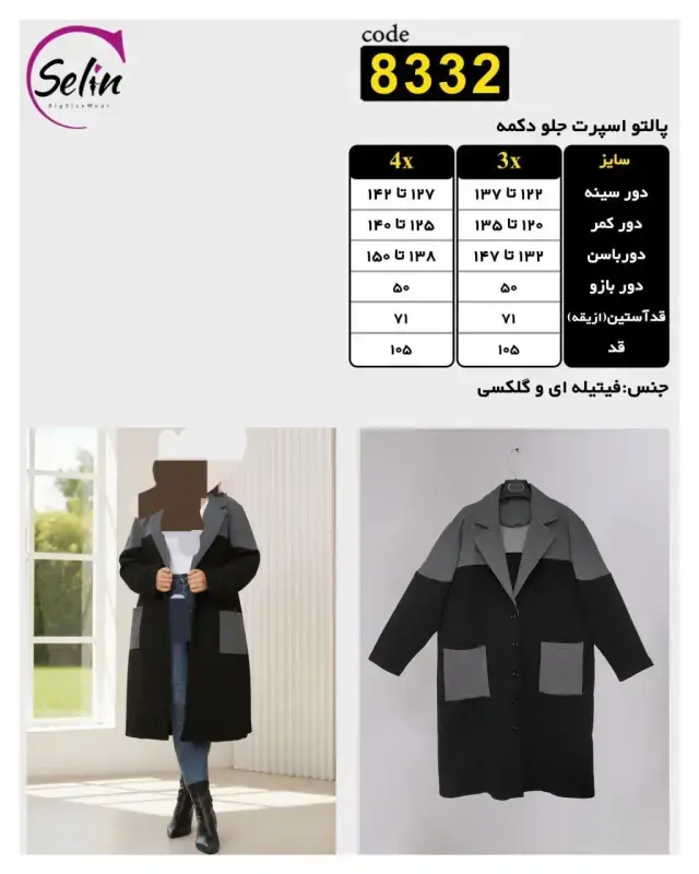 خرید عمده پالتو پاییزه جنس فیتیله و دورس گلکسی جلو بسته دورنگ