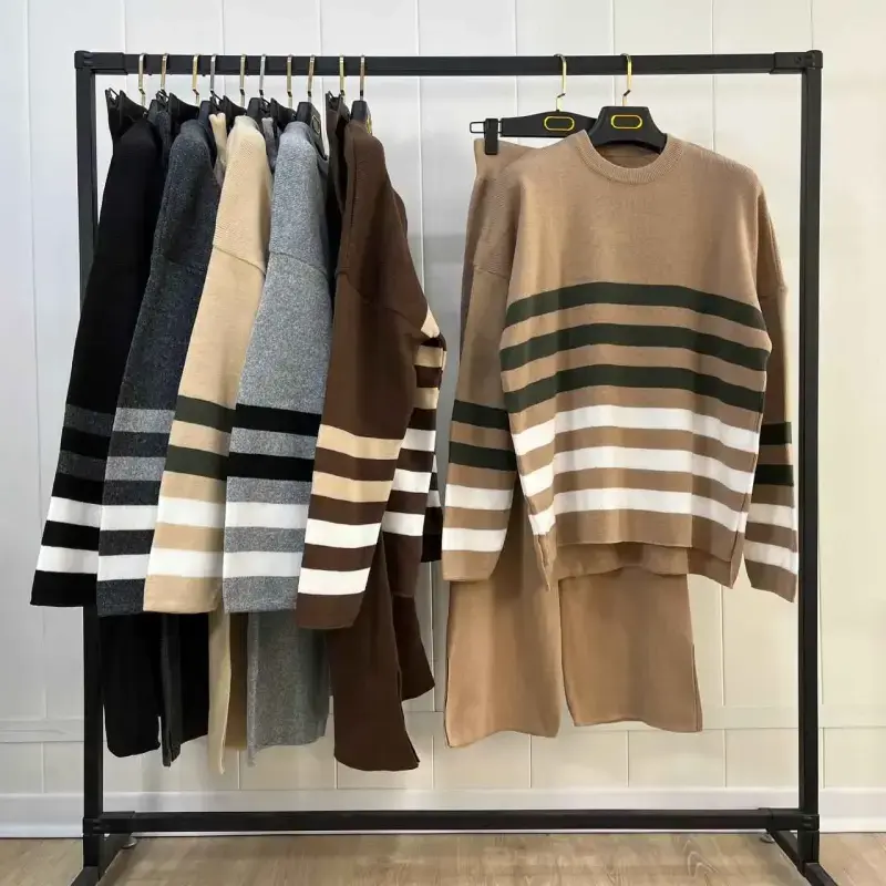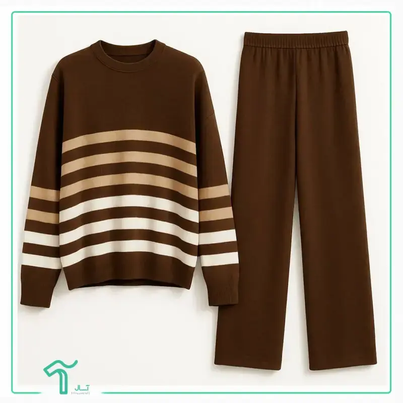 خرید عمده ست بلوز شلوار بافت راه راه 3 رنگ کد 9291