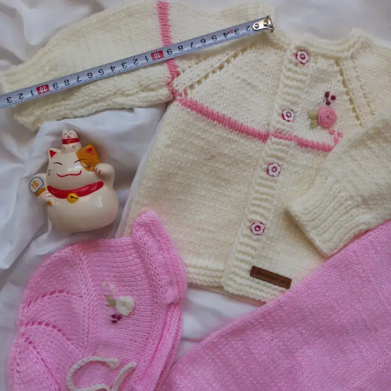 ست کامل باگلدوزیهای دست ظریف وزیبا مناسب فصل سرمامناسب تولدتاشش ماه کاموای ظریف وخوشرنگ دخترونه فقط یک عددموجوده وقابل سفارشه