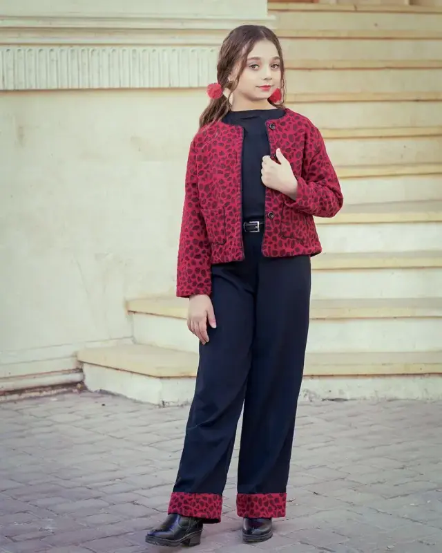 ست کت و شلوار مجلسی دخترانه طرح پلنگی از محصولات انحصاری لوبو کیدز، انتخابی ایدهآل برای تکمیل کلکسیون پوشاک شماست. این ست شامل کت، تاپ و کمربند است که با طراحی شیک و کیفیت بالا، مناسب برای مغازهداران و بوتیکداران گرامی جهت خرید عمده پوشاک دخترانه میباشد.