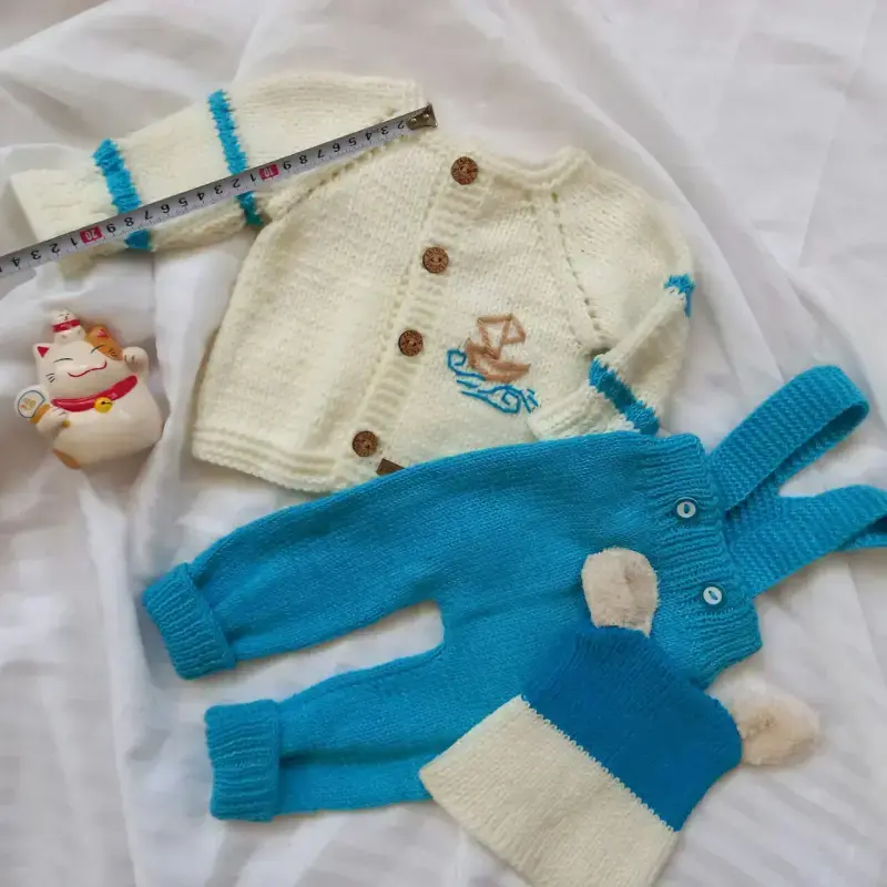 این ست کامل لباس نوزادی دستبافت با طرح الهام گرفته از دریا، انتخابی ایدهآل برای بوتیکها و فروشگاههای پوشاک نوزاد است. این محصولات با دقت و ظرافت بالا و با استفاده از تکنیک دو میل بافته شدهاند و برای فصل سرما مناسب هستند.