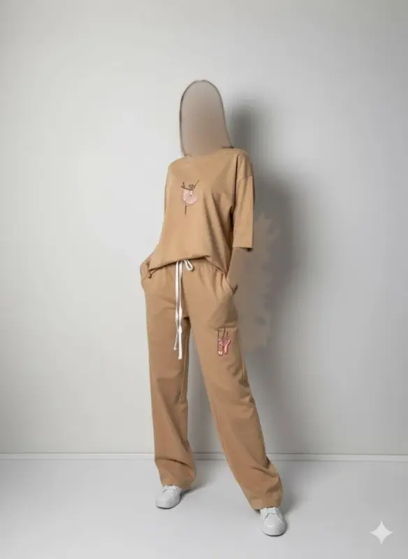 خرید عمده ست تیشرت و شلوار بگ زنانه طرح بالرین