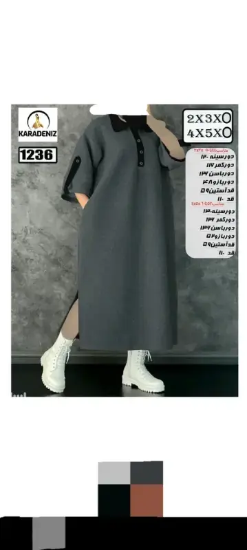 جنس و دوخت تضمینی ، جنس خارجی دورس توکرکی ، در دو رنگ جذاب، طوسی و مشکی، قد کار حدود 110،