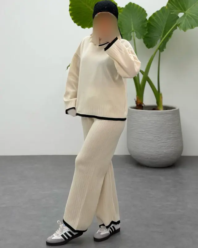 ست بافتنی زنانه پایین میلهای با حاشیه سفید