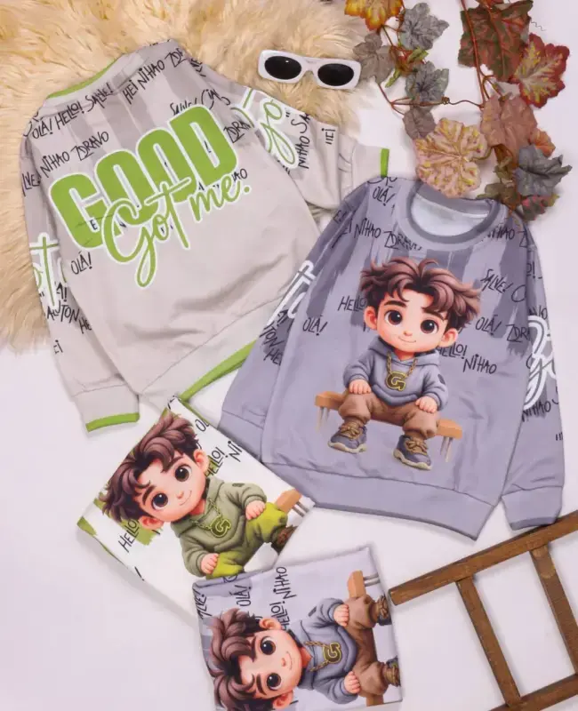خرید عمده بلوز پسرانه طرح کارتونی "Good Got Me" مناسب 4 تا 60 سال