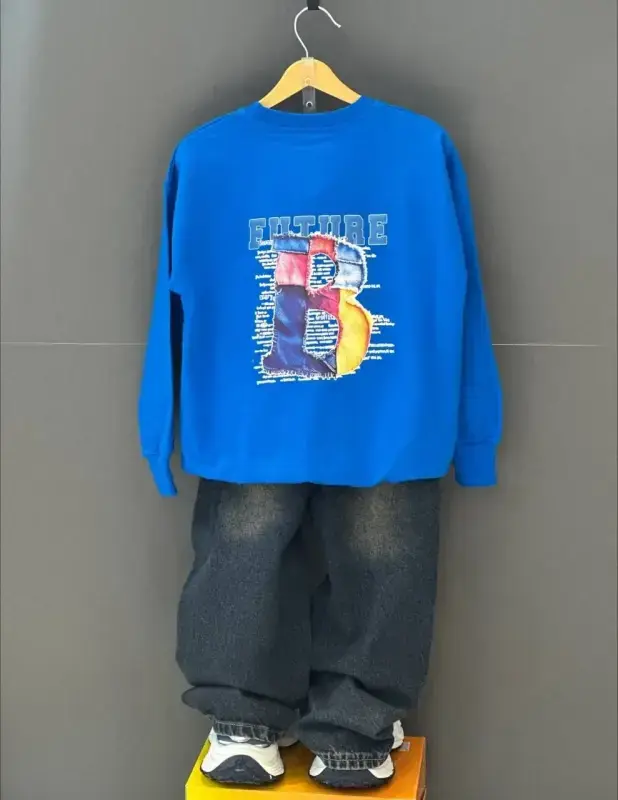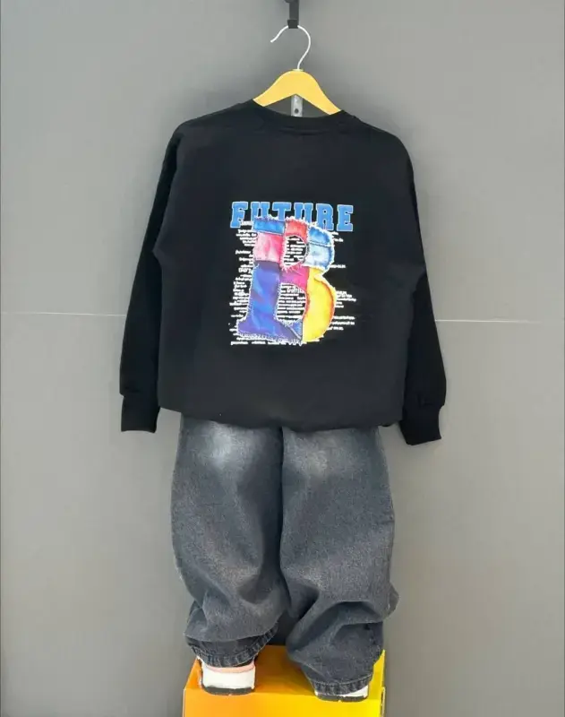 خرید عمده بلوز پسرانه طرح "FUTURE" با چاپ زل برجسته و جنس دورس لاکرا