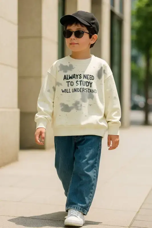 دوتیکه اسپورت پسرانه طرح "Always Need To Study" - ایدهآل برای خرید عمده پوشاک