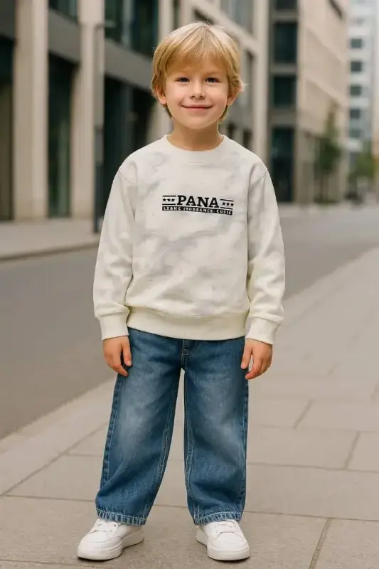 دوتیکه اسپرت پسرانه و دخترانه طرح پانـا | ست بلوز و شلوار جین راحتی