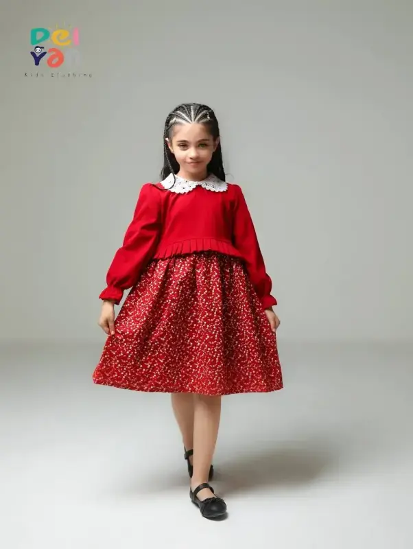این لباس دخترانه شیک و جذاب، ترکیبی از مخمل کبریتی ریز با کیفیت و دامنی از جنس کتان تافته طرحدار است که ظاهری زیبا و منحصر به فرد به آن میبخشد. این محصول برای خرید عمده پوشاک دخترانه، انتخابی ایدهآل برای بوتیکها و آنلاینشاپها محسوب میشود.