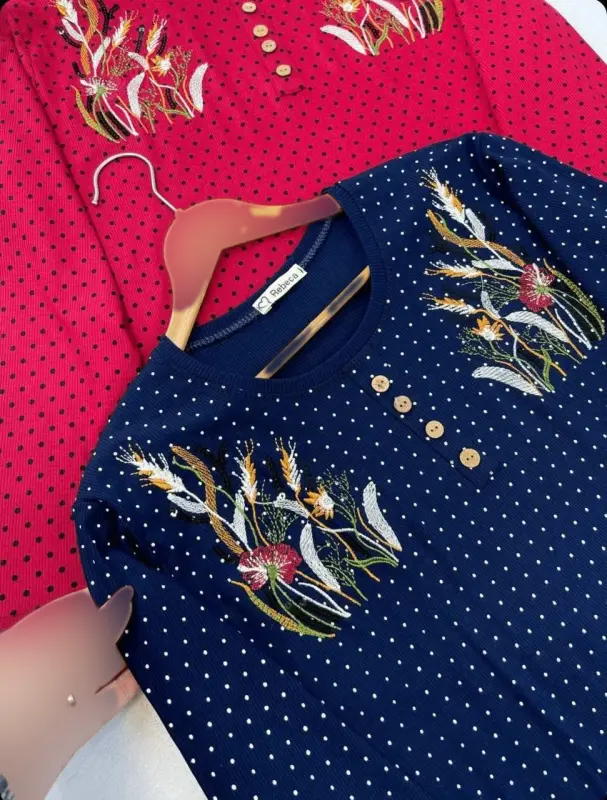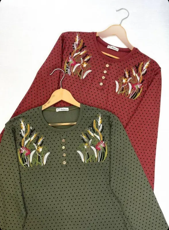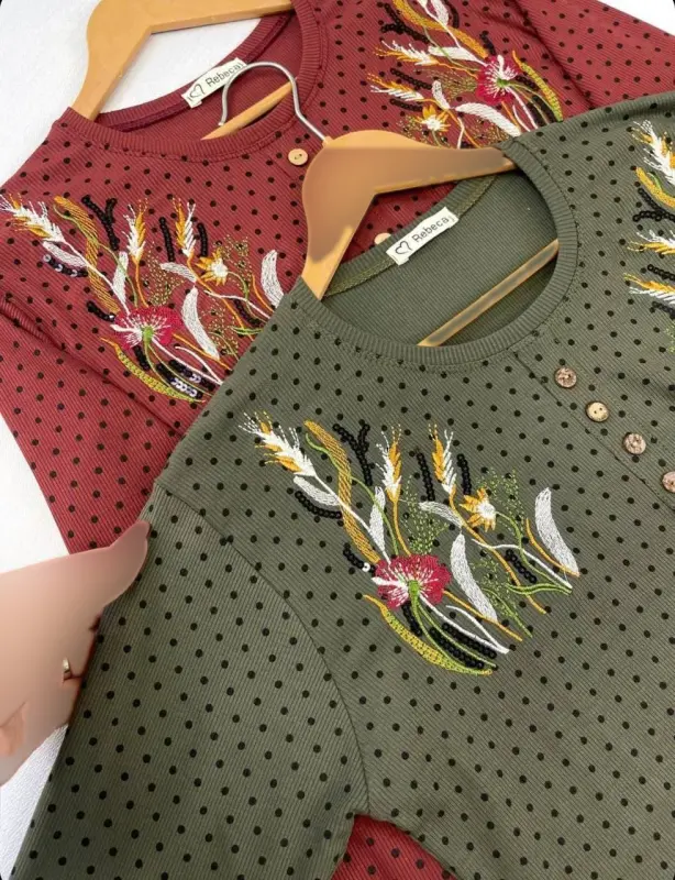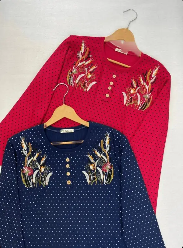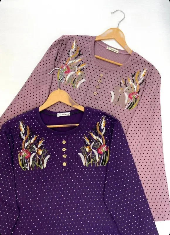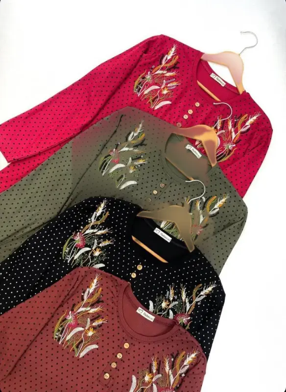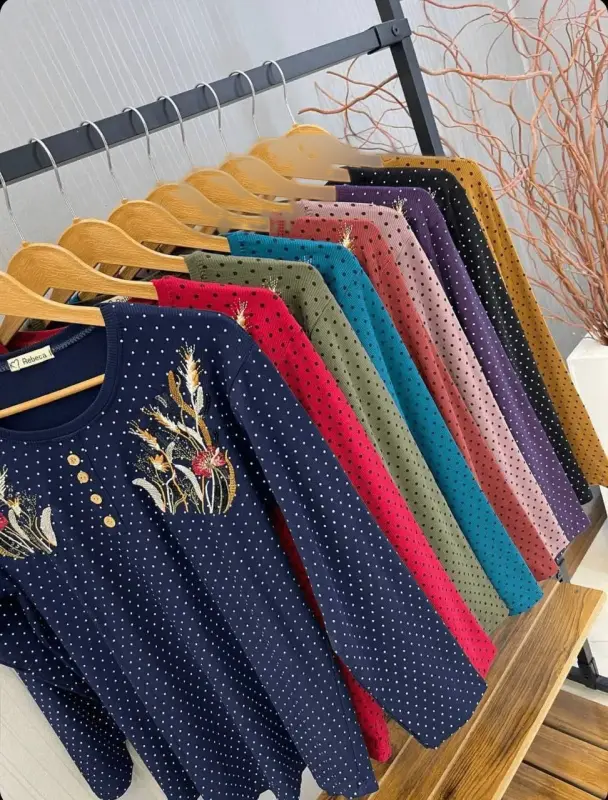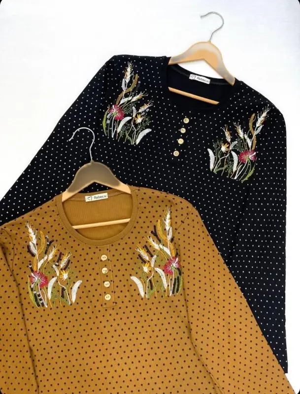 خرید عمده بلوز آستین بلند کبریتی زنانه طرح خالدار و گلدوزی شده