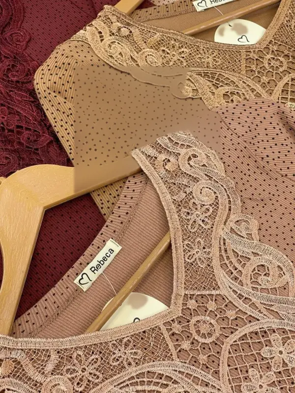 - طراحی: آستین بلند، طرح خالدار و یقه گیپور شیک.
