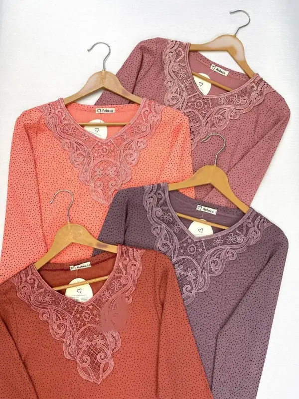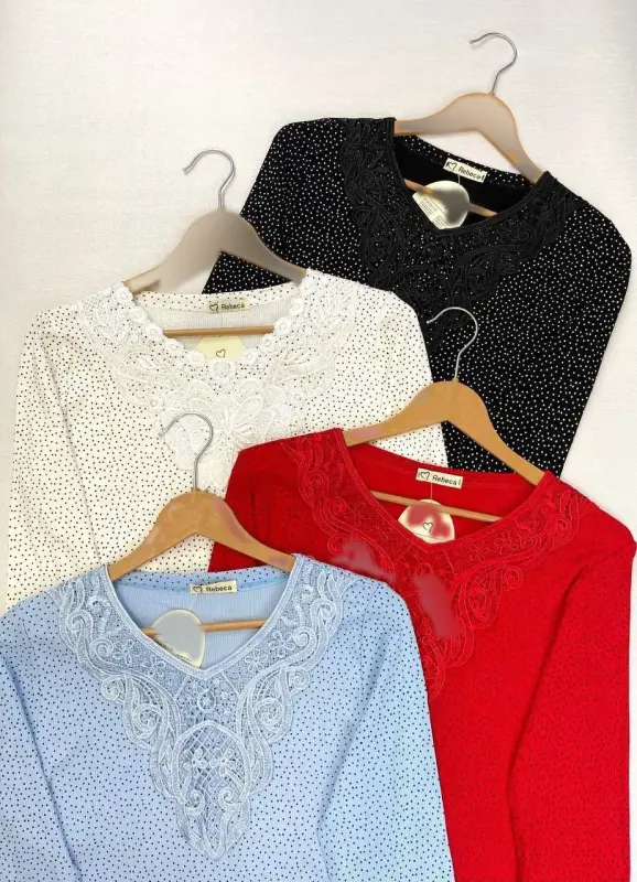 خرید عمده بلوز آستین بلند کبریتی زنانه طرح خالدار با یقه گیپور