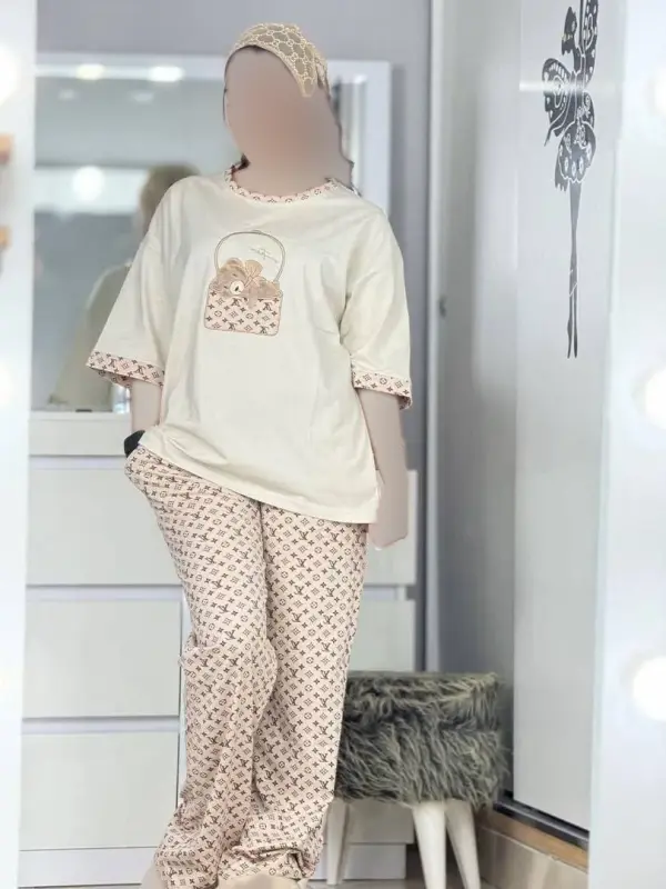 - طراحی: ست تیشرت و شلوار با طرح برجسته و شلوار بگ تمام چاپ.