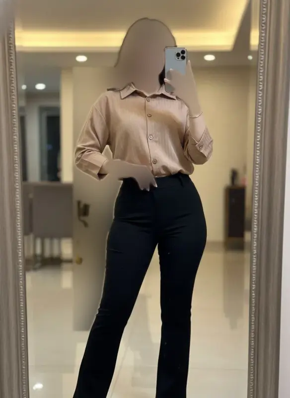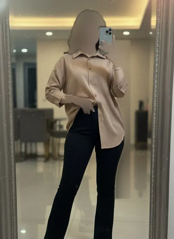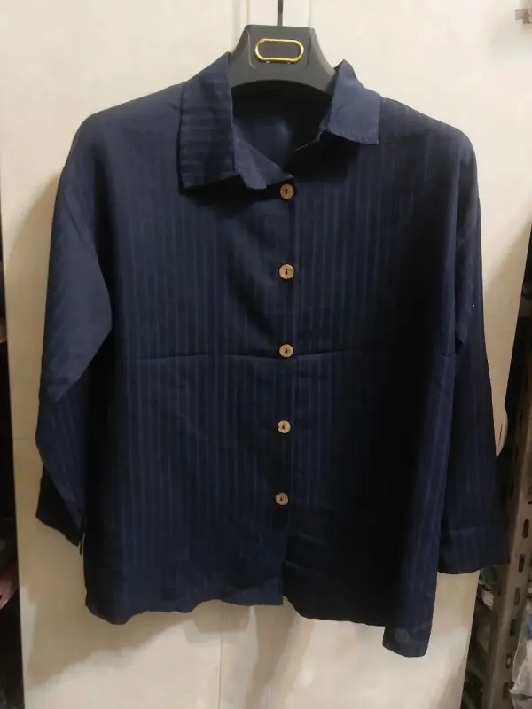 - طراحی: شومیز مانتویی با دکمه چوبی