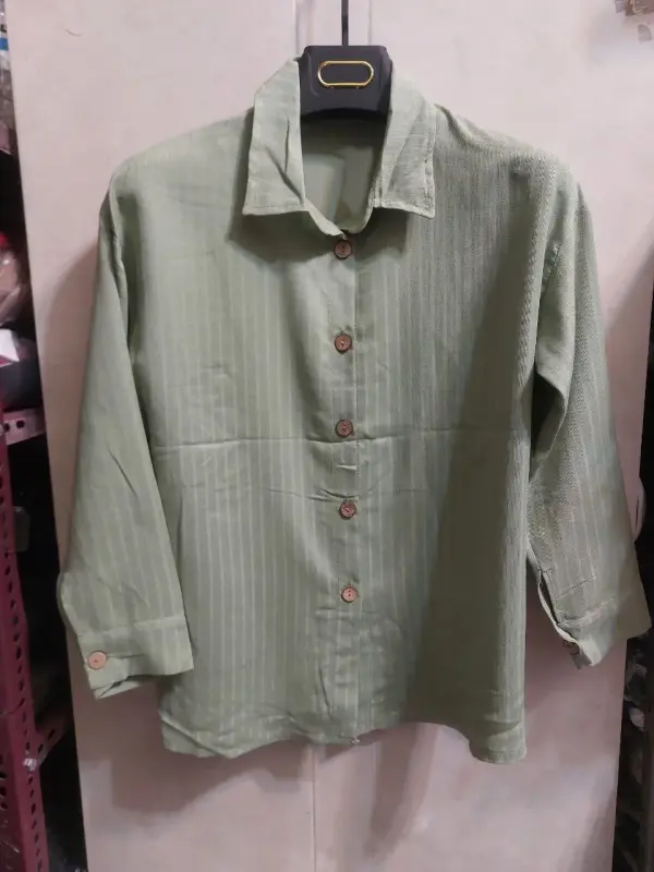 خرید عمده شومیز مانتویی دکمه چوبی زنانه