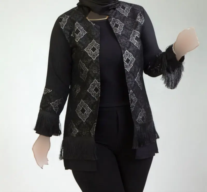 ارائه دهنده خرید عمده پوشاک زنانه، کت مجلسی مازراتی با طرح سنتی و جزئیات ریشهدار. این محصول با تلفیق زیبایی طرحهای سنتی و کیفیت پارچه مازراتی، انتخابی ایدهآل برای بوتیکها و فروشگاههای پوشاک است.