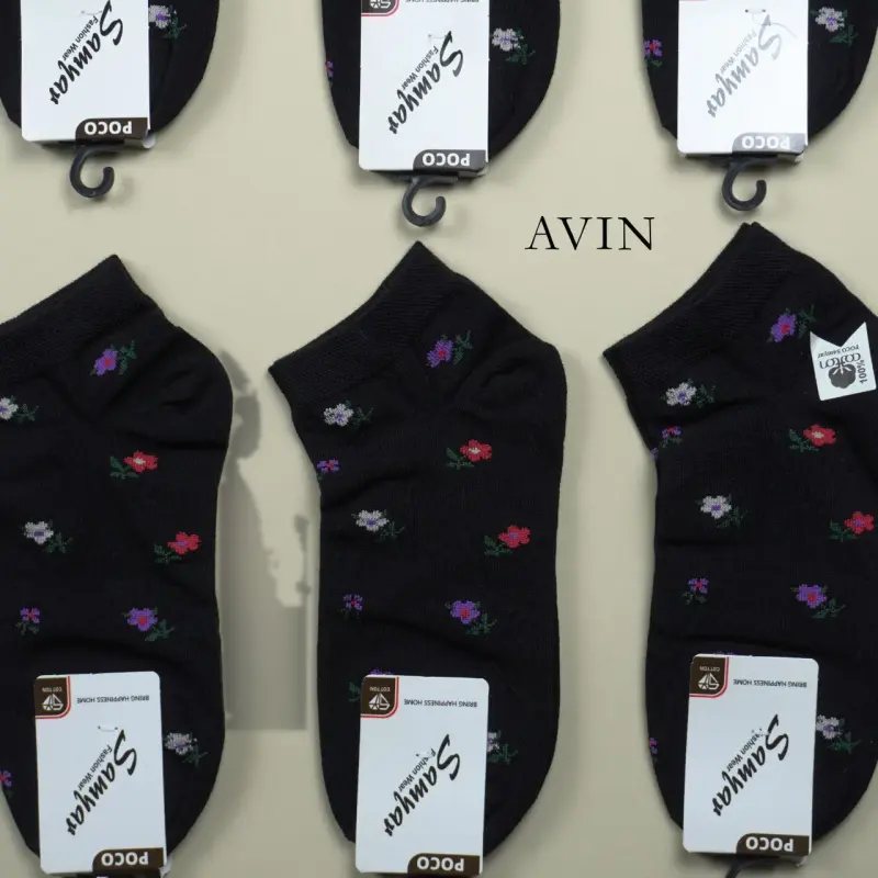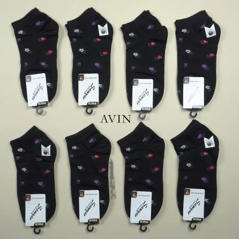 خرید عمده جوراب مچی زنانه طرح گل بابونه نخ پنبه بسته 12 عددی