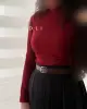 بلوز یقه اسکی کبریتی زنانه طرح آستین بلند