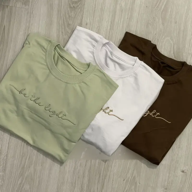خرید عمده دورس گلدوزی شده "be the light" زنانه