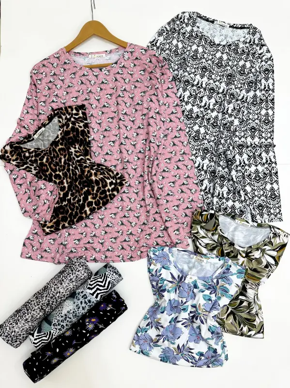 خرید عمده تیشرت آستین بلند زنانه طرحدار ویسکوز پنبه مناسب روز مادر