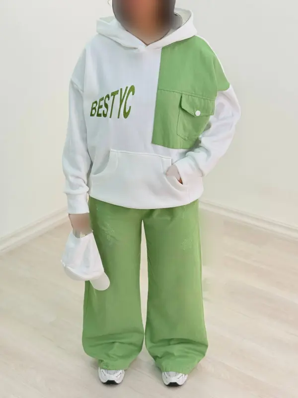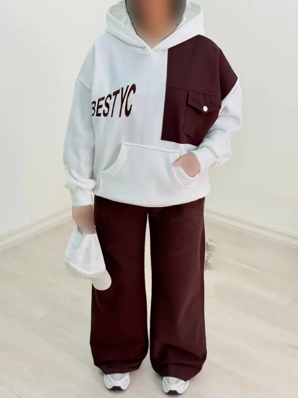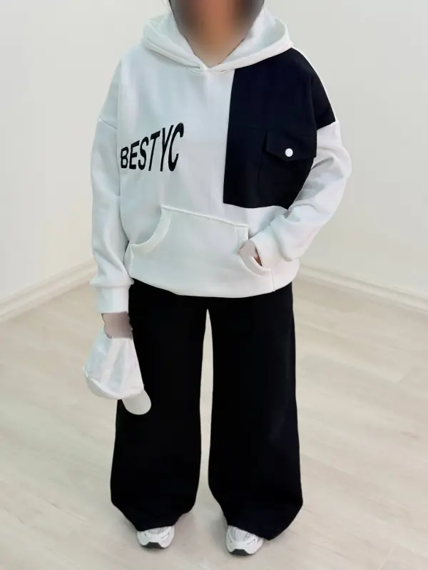 ست هودی و شلوار زنانه با طرح تیکه دوزی، مناسب برای فصل پاییز.