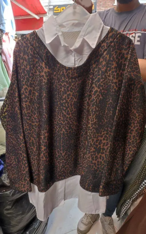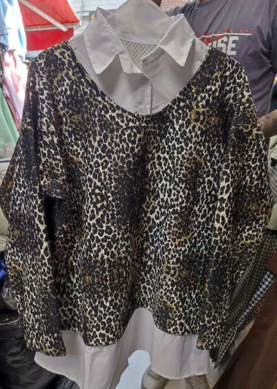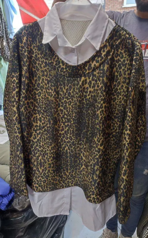 خرید عمده شومیز یقه سفید طرح پلنگی زنانه فری سایز