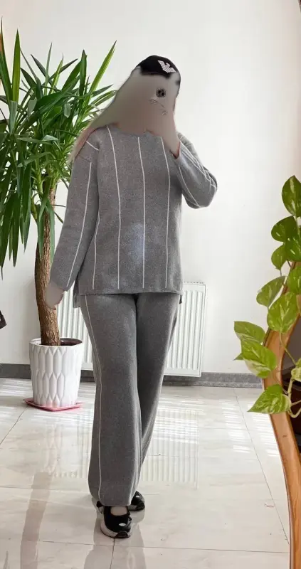 خرید عمده ست بافت زنانه طرح راه راه فری سایز تا 44
