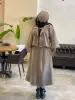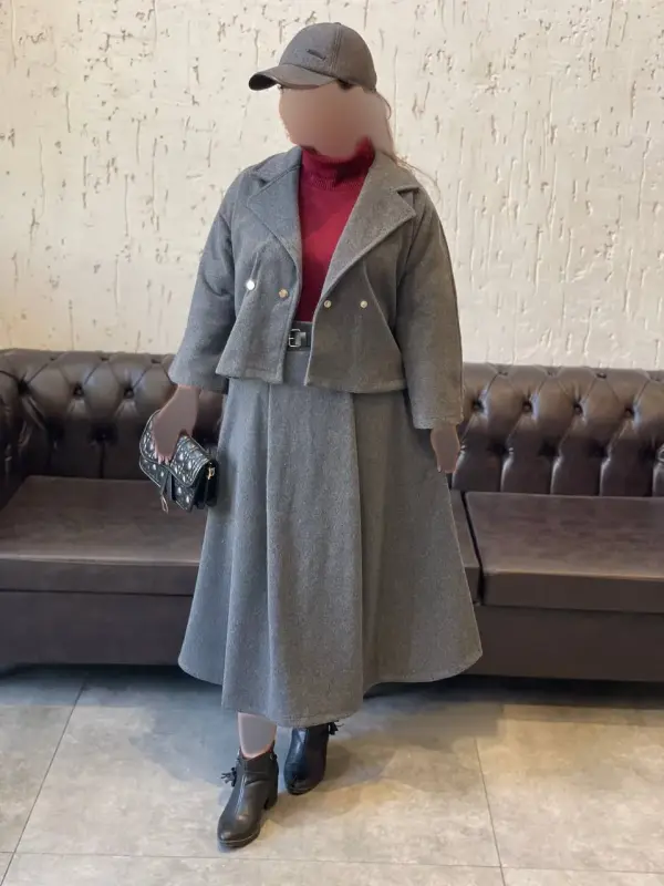 - جزئیات: کت جلودکمه همراه با کمربند، که به زیبایی استایل میافزاید.