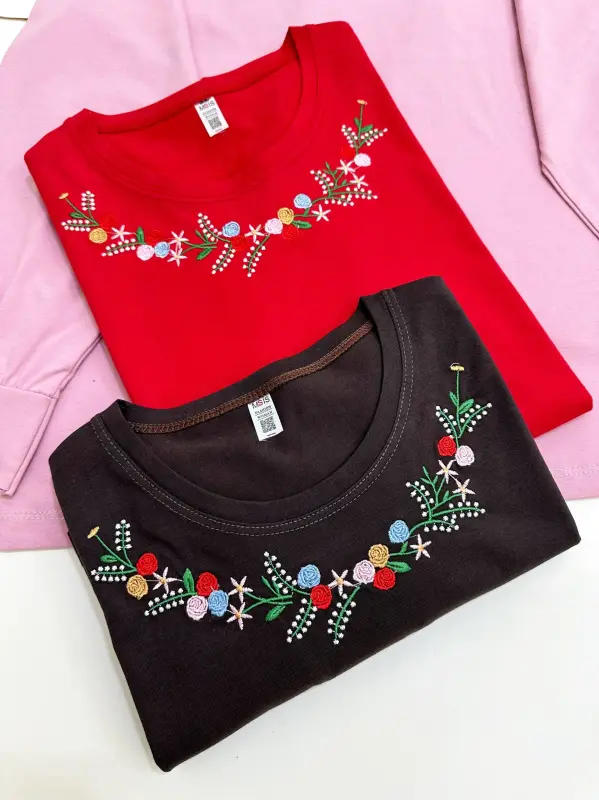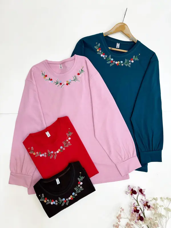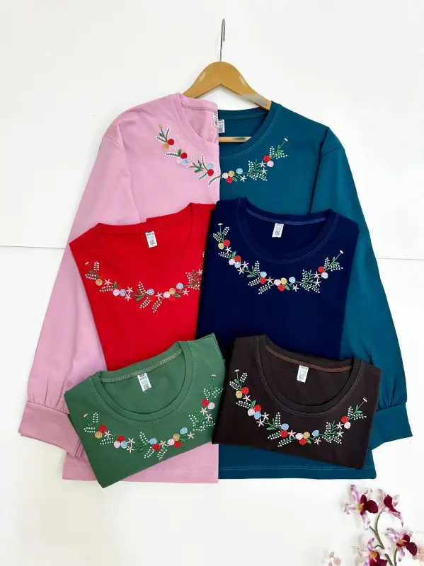 خرید عمده بلوز آستین بلند زنانه طرح گلدوزی رز پنبه سوپر اعلا