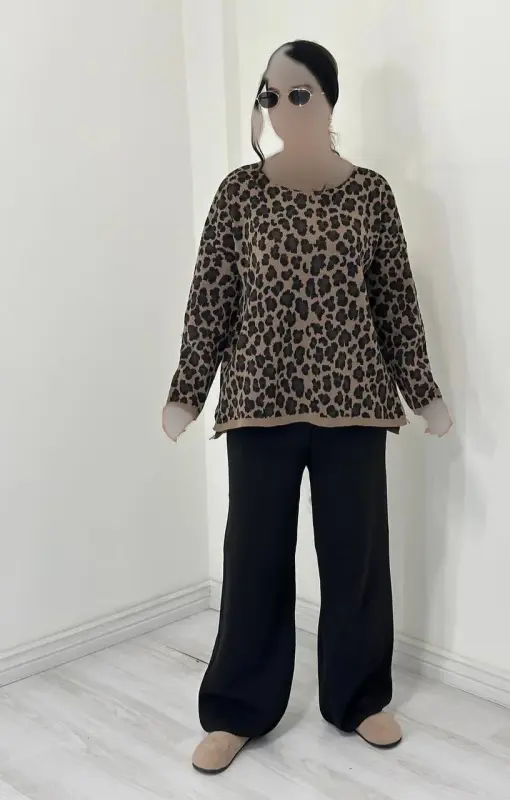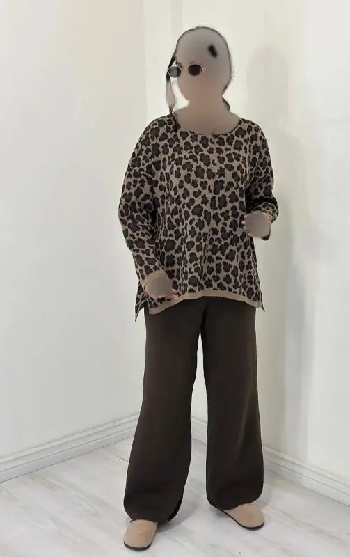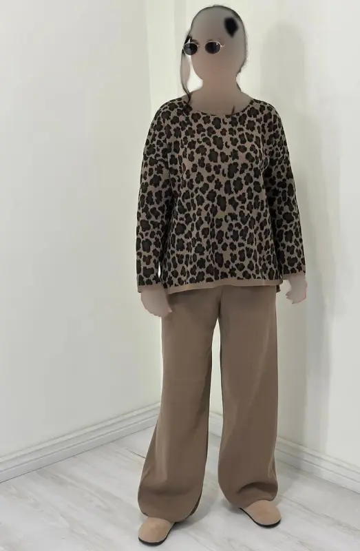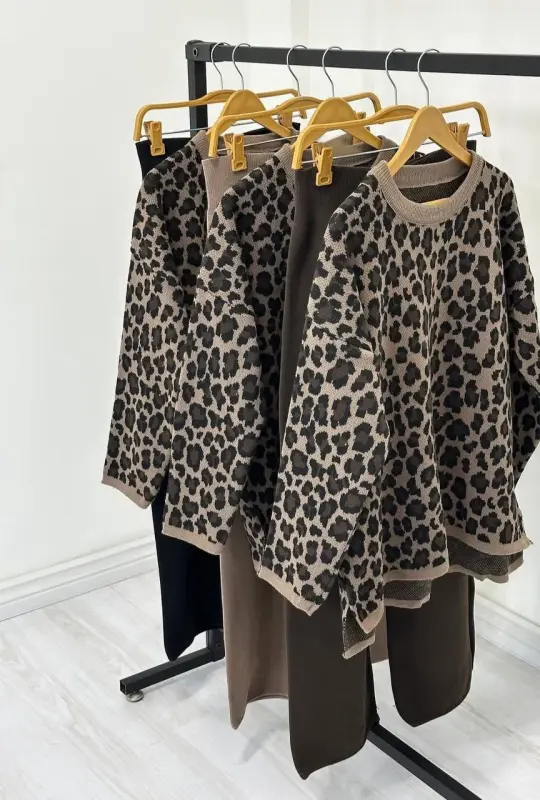 ست بافت پلنگی زنانه پاییزه