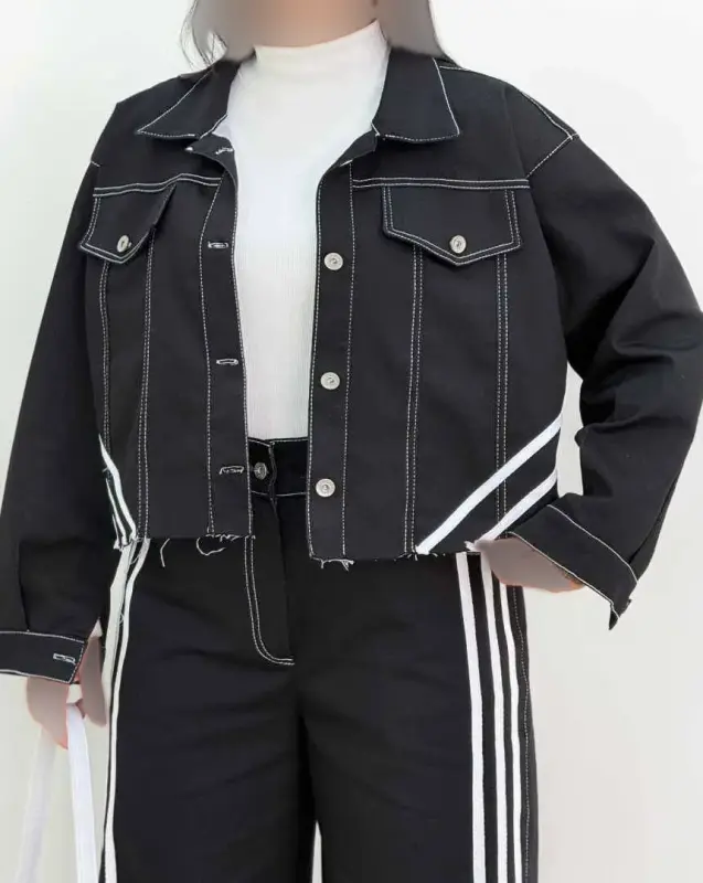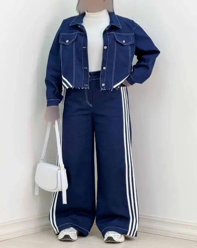 خرید عمده ست کراپ شلوار لی براش زنانه دمپا سه خط