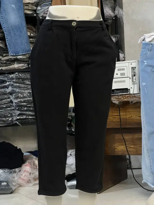 خرید عمده شلوار مام پشت کش زنانه کتان پنبه مشکی فری سایز