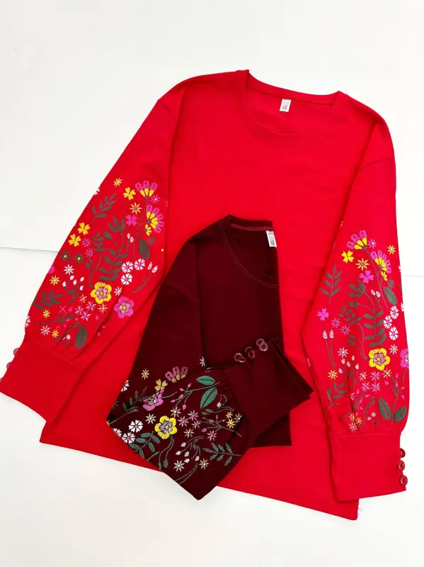 خرید عمده بلوز آستین بلند زنانه طرح گل برجسته مناسب شب یلدا