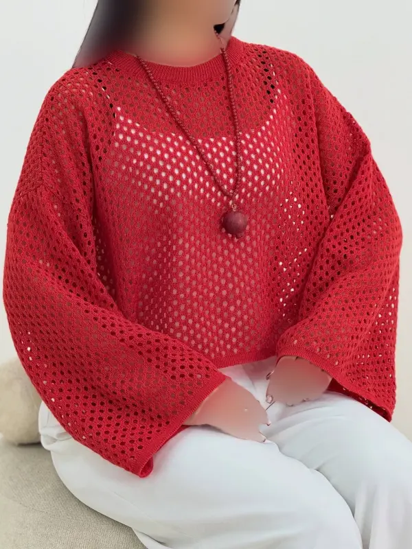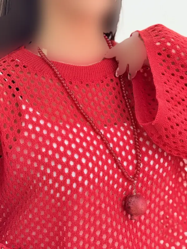 کراپ بافت توری زنانه یلدایی قرمز فری سایز