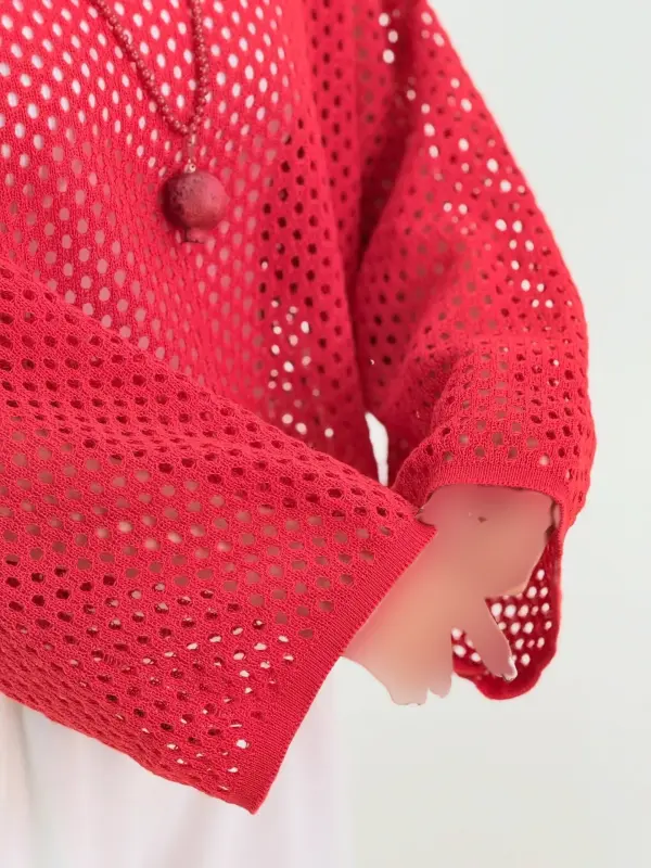 خرید عمده کراپ بافت توری زنانه یلدایی قرمز فری سایز